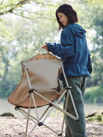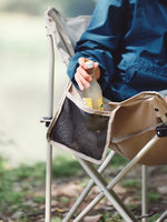 For added convenience, the chair features storage pockets on the side and back, allowing you to keep small items like a phone, power bank, keys, or accessories within easy reach. A wide loop on the back makes it easy to lift and move the chair when needed.