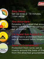 Tough polyethylene groundsheet ensures durability and long-lasting protection.